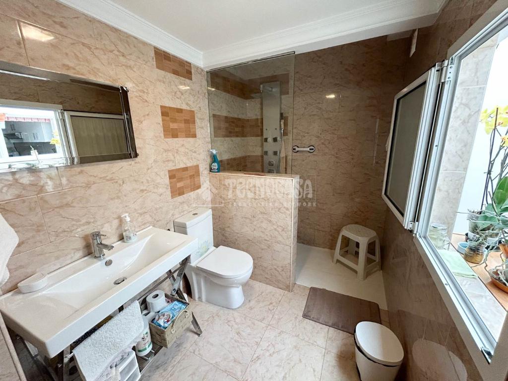 Entrada independiente a la segunda planta que consta de 3 habitaciones, un salón comedor, un hermoso balcón hacia la calle principal, cocina, baño completamente reformado y un pequeño solárium aprovechando al máximo la claridad del día.