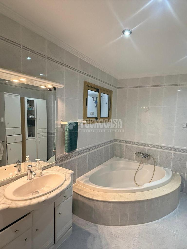 Al entrar nos encontramos un pequeño recibidor que conecta con un pasillo hacia un salón bastante amplio con vistas a la calle para después entrar y ver el pasillo que conecta con el resto de casa con un vestidor, que puede ser utilizado como oficina con una ventana hacia el salón. Luego nos encontramos 3 habitaciones bastante amplias una de ellas tipo suite con baño completo en ella, la vivienda dispone también de un baño principal bastante amplio con una bañera para relajarte luego de un largo día!! Una cocina amplia con barra americana con despensas, también cuenta con 2 patios interiores que uno es utilizado como Solana que dan bastante luminosidad a la vivienda y por último al lado de la cocina conseguimos un segundo salón bastante amplio.